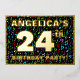 The front of this upbeat and joyful twenty-fourth birthday party foil invitation card design features a customizable name, a large number “24th”, the message “BIRTHDAY PARTY!”, and a border. The background of the front features an exciting, multicolored musical symbols and notes pattern. The back features personalized details about the event, such as the date, time, place/venue, and any other relevant information. Editable invitations like these might be a fun way to invite attendees/guests to a birthday gathering/party being held to honour somebody’s 24th birthday. These might be more meaningful if that person is a songwriter, a composer, a musician, a singer, or likes listening to music. [~Z0000601]