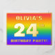 The front of this eye-catching and upbeat twenty-fourth birthday celebration/party foil invitation card design features a personalized name, a large number “24th”, the message “BIRTHDAY PARTY!”, and a border. The background of the front has a vibrant, colourful, rainbow spectrum inspired gradient pattern. The back features personalized details about the event, such as the date, time, venue/place, and any other relevant information. Customized invitations like these might be a fun way to invite attendees/guests to a birthday party/gathering being held in celebration of somebody’s 24th birthday. [~Z0000599]
