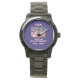 250th Anniversary 1776 to 2026, United States of America, wrist watch. A great milestone for the USA! Photo of American flags waving in the wind, and patriotic text make this a wonderful commemorative keepsake - a once in a lifetime event! Meaningful Christmas heritage gift for Independence Day, 4th of July, Veterans Day or other patriotic holidays. Available in several colours and styles for men or for women. All Rights Reserved © 2025 Alan & Marcia Socolik.