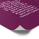 Make your wedding reception beautiful with this seating chart. It features a simple yet elegant design with white text on a magenta, plum purple, cassis, or berry coloured background with a silver faux foil floral border. This chart shows table assignments so your guests will have an easy time finding the right table.