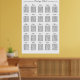 Up to 25 Table layout, laid out by table number, not names, with up to 12 people per table. A simple black and white seating chart; click "customize it" to move columns, change fonts, colors, background color or size of poster. White text on colored versions also available. Click and drag over tables, (starting from off the page) to move more than one table at a time.