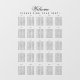 All text is black. The word Welcome is written in an elegant calligraphic script, the rest in caps. The 25 tables are on 5 rows x 5 columns. It is portrait oriented. Above them and under the word Welcome, there is the message "Please find your seat!".