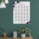 Ce magnifique tableau de sièges mariage présente un design boho chic rustique aquarelle de roses royaux violets, lavande et prune, accompagné de sprigs d'eucalyptus feuilles et de verdure du jardin. Avec 25 tables et une disposition traditionnelle, il peut accueillir jusqu'à 250 convives avec 10 couverts par table. L'élégant titre calligraphie "s'il vous plaît trouver votre table" ajoute une touche de sophistication, et il y a de l'espace pour inclure les noms du couple et la date mariage en bas. Ce tableau de sièges non seulement la beauté et le charme de votre réception de mariage, mais aussi s'assure que vos invités peuvent facilement localiser leurs tables assignées.
