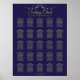 Faites de votre réception de mariage une belle avec ce tableau de 25 places. Conçu dans le cadre de notre Gold & Navy Elegant Wedding Suite, il présente un design simple et chic avec du texte en or sur un arrière - plan bleu marine avec une bordure florale ou fleurie en fausse feuille d'or. Ce graphique montre les affectations de table afin que vos invités aient un temps facile à trouver la bonne table.