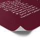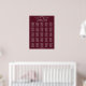 Faites de votre réception de mariage une belle avec ce tableau de sièges. Conçu dans le cadre de notre Suite de Mariage Argent & Bourgogne élégant, il présente un design simple mais élégant avec du texte gris sur un arrière - plan bordeaux avec une bordure florale en faux feuille d'argent. Ce graphique montre les affectations de table afin que vos invités aient un temps facile à trouver la bonne table.