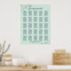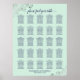 Ce magnifique tableau de sièges mariages propose des assignations de table pour 250 personnes avec 10 personnes par table. Le design est simple mais élégant avec du texte bleu marine sur un arrière - plan vert clair ou de couleur néo-menthe avec un faux fil gris argenté en dentelle dans les coins, et script de calligraphie lisant : s'il vous plaît trouver votre table.