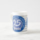 25 Years Anniversary Commemorative Mug with grey horizontal stripes. Blue, white, and grey colours. 25 years anniversary gift mug.
