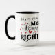 This cute and funny mug is a great gift for the wife celebrating her 25th Anniversary. It reads "25 years of being Mrs Always Right" in a combination of black serif and script fonts, accented by whimsical red hearts. The number of years may be customized if you are giving this mug for a different anniversary year.
