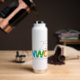 Célébrez le 25e anniversaire du New World Chorale avec cette bouteille d'eau élégante. Cette conception comprend une paille intégrée au casquette amovible.