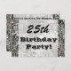 L'amusement et la 25ème invitation élégante de partie d'anniversaire (ou changement à l'anniversaire) avec les paillettes argentées de scintillement de boule de miroir de disco imprimées semblent l'effet haut étroit à l'arrière-plan sur l'avant et également sur le dos de l'invitation. Customisez facilement le texte et la couleur de l'avant et du dos de police. Grand pour ces anniversaires spéciaux pour des enfants, des ados, et des hommes et des femmes de n'importe quels âge, anniversaires, événements spéciaux, carte montrée etc. dit : "25ème fête d'anniversaire" sur l'avant que vous pouvez facilement changer en n'importe quel âge ! Customisez facilement le dos de cette carte chique sure pour obtenir l'attention de tous vos invités invités !