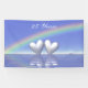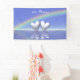 25th anniversary welcome banner with two silver hearts floating on the water.