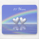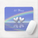 Give this useful mousepad as a gift with its pretty image of 2 silver hearts floating on the water under a rainbow. Customizable text says "25 Years".