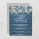 Featuring pretty string lights and delicate silver hearts confetti on a blue rustic wood background. Personalize with your special twenty-five years silver anniversary save the date information in chic lettering. Designed by Thisisnotme©