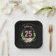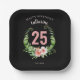 25th Birthday black Floral script name Paper Plate