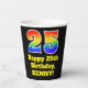 This exciting and colourful birthday-themed paper cup design features a large number “25” having a rainbow spectrum gradient inspired pattern. It also features the message “Happy 25th Birthday,”, and an editable name. It also has a black-coloured background. Vibrant, colourful paper cups like this might be fun to use at a birthday party being held to honour somebody’s twenty fifth birthday. [~Z0000537]