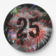 Fireworks in black night sky with clouds and stars for 25th birthday party.