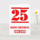 25th Birthday: Fun, Red Rubber Stamp Inspired Look Card