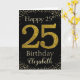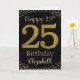 Happy Birthday with simulated golden glitter number 25 set on a solid colour and framed by faux diamonds and rhinestones. Happy birthday and recipients name in off-white font. Personalize with name or message.