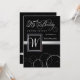 Formal yet contemporary 25th Birthday celebration invitations -- Black with silver script and monogram. Customize the name, date, and details for this special and honoured occasion. © Teri Francis. Matching postage and thank you cards available.