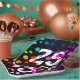 Neon rainbow dot pattern on black background for 25th birthday party.