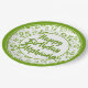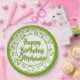 This numeric design has a green and white random number pattern with a green milestone number 25 repeated in varied sizes and angles. There is a white circle in the centre for your text and green-and-white rings around the rim.