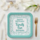 25th Party Random Number Pattern Teal/White Paper Plate
