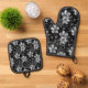 25th Silver Glitter Floral Wedding Anniversary Oven Mitt & Pot Holder Set