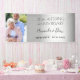 A banner celebrating a 25th wedding anniversary. An elegant faux silver coloured background. Personalize and add your own photo of the happy couple. The text: The names is written with a black modern hand lettered style script. Tempates for names and a date. Can be used as a party welcome sign, party wall decoration and a keepsake.
