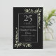 Featuring delicate watercolour leaves that frame your personalized twenty-fifth wedding anniversary celebration information in elegant silver text on a black background. Designed by Thisisnotme©