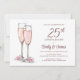 Raise a glass with us as we toast to our 25th wedding anniversary. This elegant invitation, featuring two sparkling pink champagne glasses, is the perfect way to invite your friends and family to join in the joy, laughter, and cherished memories. You can effortlessly add all the necessary details to the customizable text. Choose from various paper types and corner styles to make your invitations unique. Additionally, you have the option to download the invitation if you prefer a digital format.