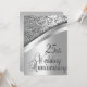 Elaborate silver wedding anniversary invitations for a 25th wedding reception / party. Silver front and back with black text on back giving a classy look to this unique anniversary invite.