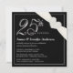 Affordable yet Elegant Silver and Black 25th Anniversary Party Invitations with formal script and romantic ribbon design -- Customize the name, date, and details for this happy occasion. **NOTE: Sized for SQUARE invitation cards. Matching postage and thank you cards available.