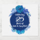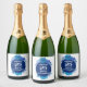 25th Wedding Anniversary sparkling wine Bottle Labels. Design with blue water colour flower