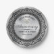 Silver faux metallic look background with black and silver Islamic motive ornate circle frame. Silver wedding template.