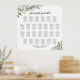 This rustic 26 table wedding seating chart features an elegant boho chic design with hand painted watercolor eucalyptus leaves, greenery, and garden foliage in shades of mint, moss, and sage green. It includes table assignments for 260 guests with 10 seats per table. The lacy script calligraphy title reads: Please find your table, and the names of the couple and wedding date appear at the bottom. Wonderful way to help your guests find their seats while adding elegance and style to your reception.