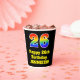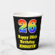 This exciting and colourful birthday themed paper cup design features a large number “26” having a rainbow spectrum gradient inspired pattern. It also features the message “Happy 26th Birthday,”, and an editable name. The background is coloured black. Vibrant, colourful paper cups like this might be fun to have at a birthday party being held to honour somebody’s 26th birthday. [~Z0000537]