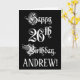 26th Birthday: Fancy, Elegant Script + Custom Name Card
