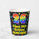This fun and colourful birthday-themed paper cup design features a large number “26” with a rainbow spectrum gradient inspired pattern, along with the message “Happy 26th Birthday,”, and a custom name. The background features a multicolored pattern having many star shapes with different sizes and colours. Vibrant, colourful paper cups like this might be fun to use at a birthday party being held to celebrate somebody’s 26th birthday. [~Z0000540]