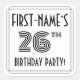 Sticker Carré Fête du 26e anniversaire : Style Art Déco + Nom pe
