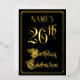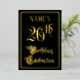 The front of this luxurious and fancy foil twenty-sixth birthday party invitation design features the message “26th Birthday Celebration” in ornate script-style text. It also has a personalized name. The background of the front is coloured black by default (although it can be customized to a different colour). The back features personalized details about the event, such as the date, time, location, and any other relevant information. Ornate, opulent, editable invitations like these might be used to invite guests to a birthday party/celebration being held in celebration of somebody’s twenty sixth birthday. [~Z0000589]