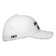 Fits well due to elastic edging, not adjustable. Good qualty material. Good quality embroidering. Subtle lettering (white on beige) just as my wife likes.