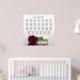 Ce beau tableau de 27 sièges mariage de table présente une photo d'un seul rose bordeaux, marron ou rouge vif à long tige, allongé sur son côté réfléchissant dans l'eau avec des vagues et des ondulations. Le titre dit "s'il vous plaît trouvez votre table" dans élégante calligraphie de script en dentelle. Il y a de la place pour les noms des couples et la date du mariage. Ce tableau a assigné des tables pour 270 invités à l'arrangement traditionnel de 10 personnes par table.