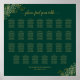 Cette belle carte de sièges mariages a des places pour 27 tables à 10 places par table ou 270 places. Il présente un design simple mais élégant avec du texte en or sur un arrière - plan couleur vert émeraude et des faux papiers en or lacy dans les coins. Le titre est écrit en calligraphie de script et dit : S'il vous plaît trouver votre table. Design et raffiné !