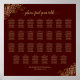 Cette belle carte de sièges mariages a des places pour 27 tables à 10 places par table ou 270 places. Il présente un design simple mais élégant avec du texte doré sur un arrière - plan de couleur chocolat ou auburn et des feuilles d'or en faux feuille en dentelle dans les coins. Le titre est écrit en calligraphie de script et dit : S'il vous plaît trouver votre table. Design et raffiné !