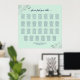Cette belle carte de sièges mariages a des places pour 27 tables à 10 places par table ou 270 places. Il présente un design simple mais élégant avec du texte bleu marine sur un arrière - plan vert clair ou de couleur néo-menthe et un faux film décoratif en dentelle gris argent dans les coins. Le titre est écrit en calligraphie de script et dit : S'il vous plaît trouver votre table. Design et raffiné !