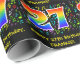 This fun, colourful, and vibrant birthday wrapping paper design features a large number "27" having a rainbow spectrum gradient inspired pattern. It also features the message "Happy 27th Birthday,", and a customizable name. Part of the background features a colourful music notes and symbols pattern. Wrapping paper like this might be used when giving a gift or present in honour of a musician’s, a singer’s, a music composer’s, or somebody else’s 27th birthday. [~Z0000422]
