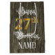 This fancy and elaborate birthday gift bag design features the message “Happy 27th Birthday,”, and a custom recipient name. Some of the message is in elegant script-style text, the large number “27th” features an imitation/faux gold-inspired look pattern, and the background has a faux/imitation woodgrain-inspired pattern. An opulent birthday themed gift bag like this might be a respectable way to wrap a gift or present being given to celebrate somebody’s 27th birthday. [~Z0000562]