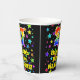 This joyful and fun birthday themed paper cup design features a large number “27” having a rainbow spectrum gradient inspired pattern. It also features the message “Happy 27th Birthday,”, and a custom name. The background features a multicolored star field inspired pattern. Vibrant, colourful paper cups like this might be fun to use at a birthday celebration being held to honour somebody’s 27th birthday. [~Z0000540]
