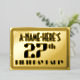 The front of this 1920s-1930s era style inspired twenty-seventh birthday party foil invitation card design features a custom name, an art deco style inspired number “27th”, the message “BIRTHDAY PARTY”, and a multi-line border. The back features personalized details about the event, such as the date, time, location/venue, and any other information that may be important. Luxurious, stylish, personalized invitations like these might be used to invite attendees/guests to a birthday party being held to celebrate somebody’s 27th birthday. [~Z0000606]