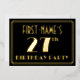 The front of this vintage-look twenty-seventh birthday party/celebration foil invitation features a personalized name, a large art deco style inspired number “27th”, the message “BIRTHDAY PARTY”, and a border pattern consisting of lines. The front also has a black-coloured background by default, but it can be customized to a different colour if desired. The back features personalized details about the event, such as the date, time, venue, and any other important information. Luxurious, elegant, personalized invitations like these might be used to invite guests to a birthday party/gathering being held to honour somebody’s 27th birthday. [~Z0000591]